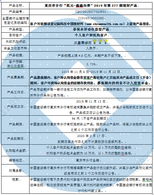 2019年第377期理财产品说明书