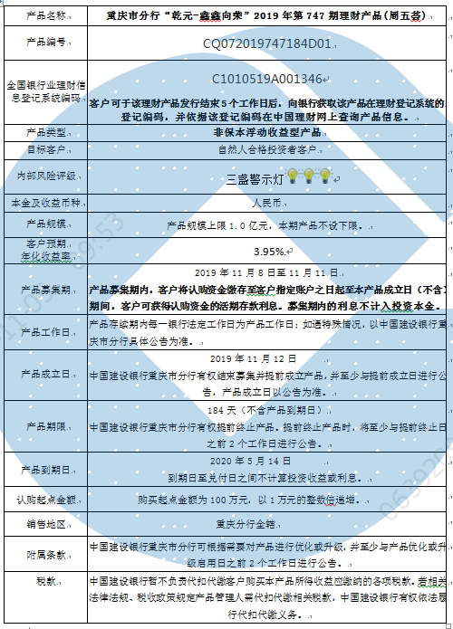 3.中国建设银行重庆市分行可根据市场情况等调整产品规模上、下限,并最迟于调整规模上下限当日进行公告。