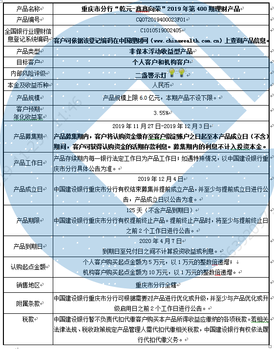 3.中国建设银行重庆市分行可根据市场情况等调整产品规模上、下限,并最迟于调整规模上下限当日进行公告。