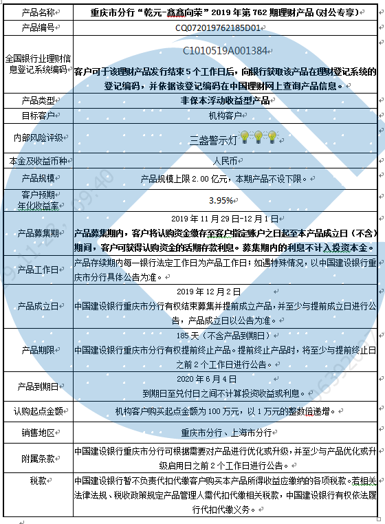 2019年第762期理财产品说明书