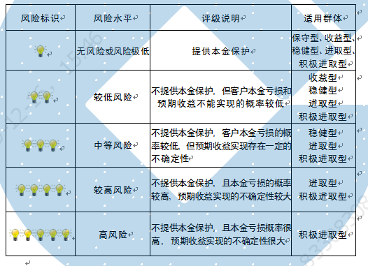 本产品为非保本浮动收益型理财产品,不保证本金和收益,请您充分认识投资风险,谨慎投资。本期产品期限为127天(中国建设银行有权对产品进行展期或提前终止),存续期内,产品不接受申购或赎回申请。本期产品内部风险评级级别为三盏警示灯 ,风险水平属于中等风险。最不利情况下,您将损失全部收益甚至包括全部本金。本理财产品适用于稳健型、进取型 、积极进取型客户。