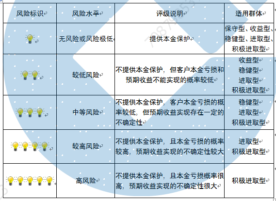 本产品为非保本浮动收益型理财产品,不保证本金和收益,请您充分认识投资风险,谨慎投资。本期产品期限为184天(中国建设银行有权对产品进行展期或提前终止),存续期内,产品不接受申购或赎回申请。本期产品内部风险评级级别为三盏警示灯,风险水平属于中等风险。最不利情况下,您将损失全部收益甚至包括全部本金。本理财产品适用于稳健型、进取型 、积极进取型客户。