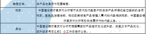 4.中国建设银行重庆市分行可根据市场情况等调整预期年化收益率,并至少于新的预期年化收益率启用日前进行公告。