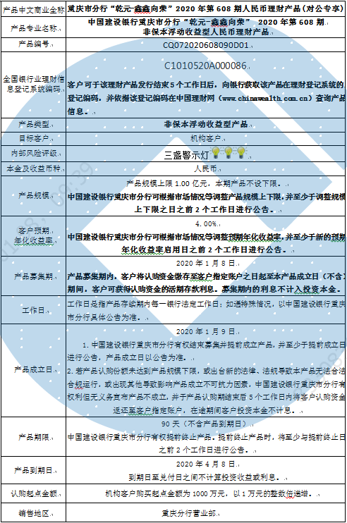 2020年第608期人民币理财产品说明书