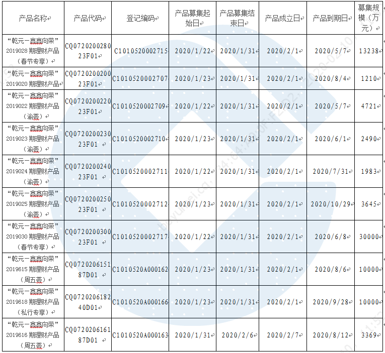 根据与投资者的约定,现将2020年1月24日-2020年2月7日期间理财产品成立情况信息进行披露: