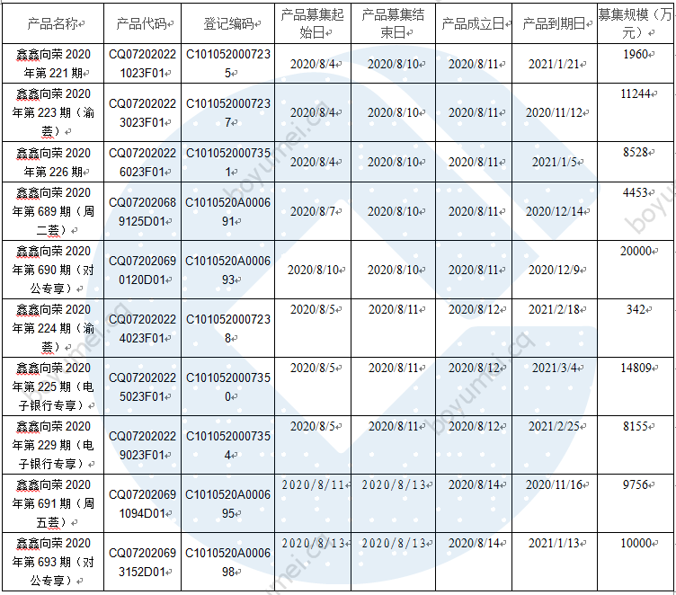 根据与投资者的约定,现将2020年8月10日-2020年8月14日期间理财产品成立情况信息进行披露: